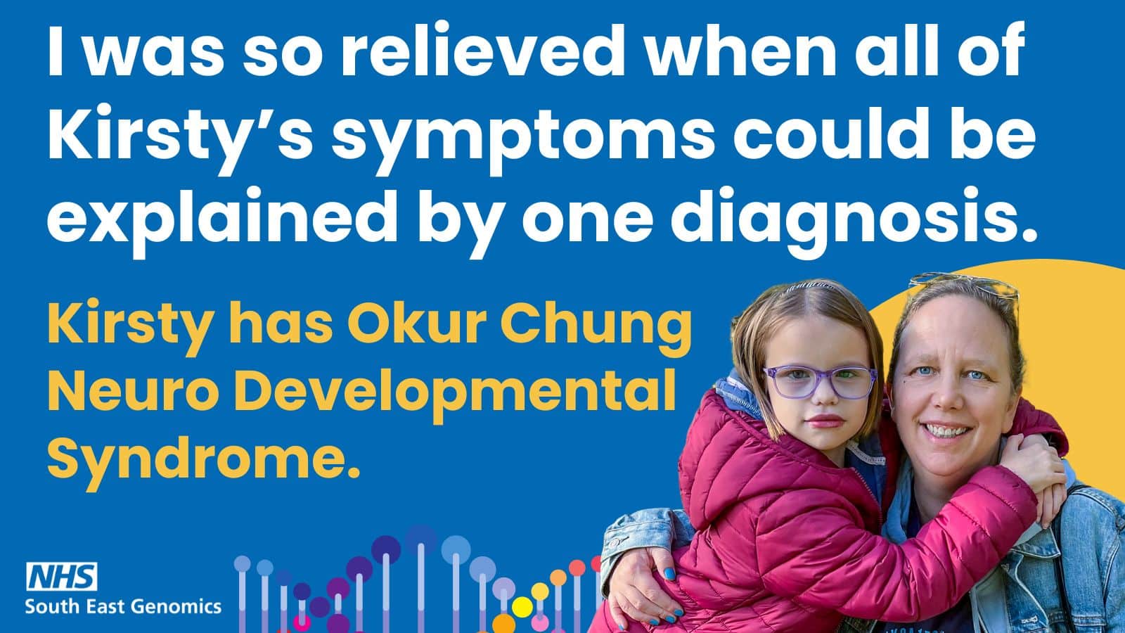 “It took three years, but in 2019 we finally got a diagnosis for Kirsty. The results showed she has a rare genetic condition called Okur Chung Neuro Developmental Syndrome.”
